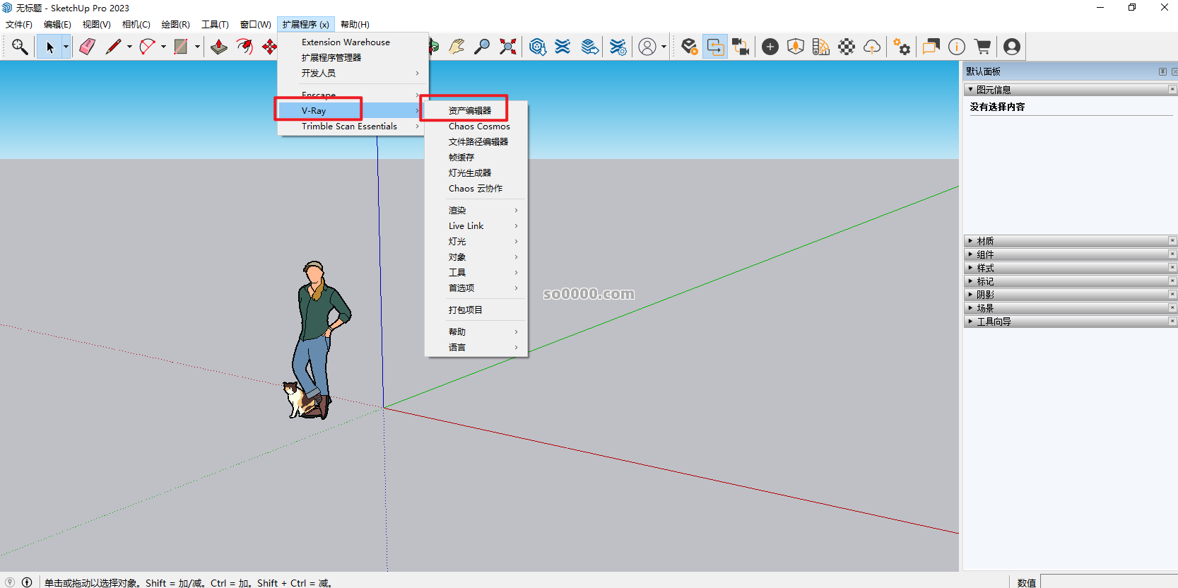 打开扩展程序V-ray下的资源编辑器,可以设置渲染器参数