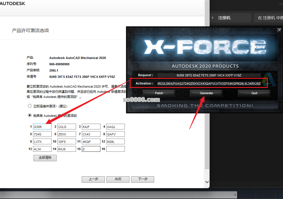 点击generate生成激活码,复制激活码粘贴到我具有里面